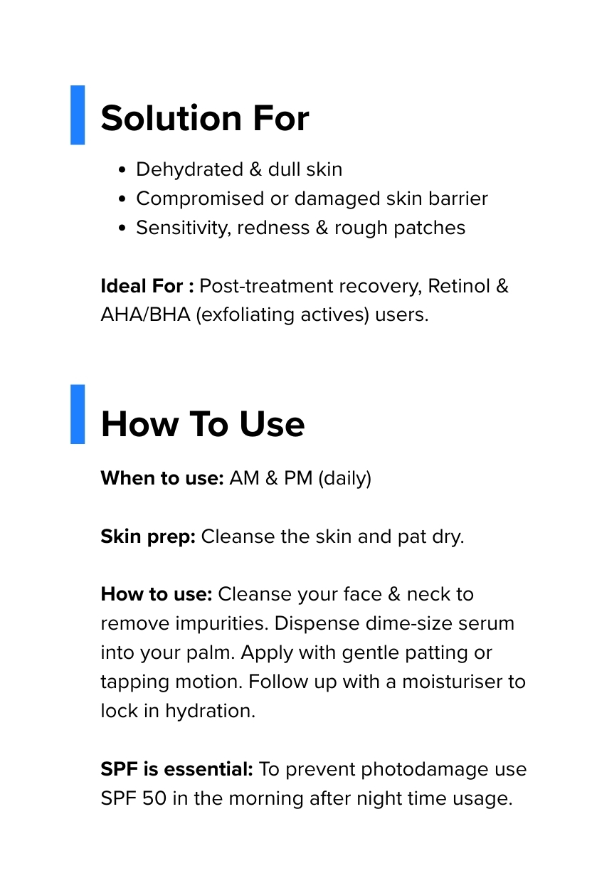 - Panthenol - Calms inflammation, boosts hydration, and accelerates healing in dry or compromised skin.